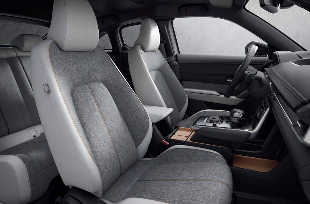 تتشابه ميزات الأمان في سيارة «MX-30» الفئة الأساسية وفئة الـ«PREMIUM PLUS»، وفي كلا الفئتين مقاعد الركاب مصنوعة من الجلد. لكن في الفئة الثانية 20% من قماش مقاعد الجلد مصنوعٌ من خيوطٍ معاد تدويرها. وبالإضافة إلى ذلك، فالاختلاف يوجد فرقاً بسيط في الألوان الخارجية للسيارة.