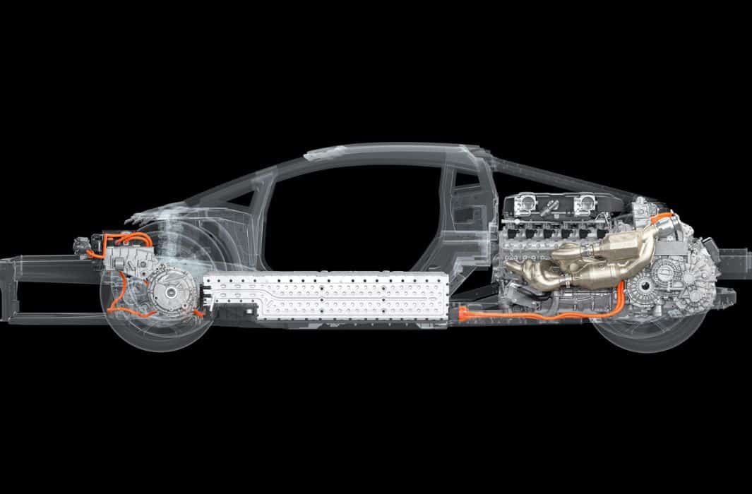 وضعت «Lamborghini» علبة التروس الجديدة خلف محرك الوقود بشكل عرضي وذلك لترك مساحة مناسبة لبطارية الليثيوم أيون. وهذا ما فعلته مع سيارتين من سياراتها فقط.