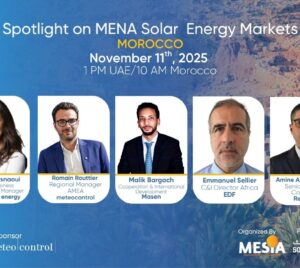 Welcome to MESIA’s Spotlight Series on MENA’s Solar Market. Second Stop: Morocco!Organized by MESIA and powered by Solarabic, this exclusive webinar will explore one of the region’s most dynamic renewable energy landscapes. Morocco’s ambitious solar targets, supportive policy framework, and flagship projects position it as a leader in MENA’s clean energy transition. This session will