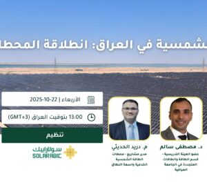 انضموا إلينا في ندوتنا القادمة بعنوان: “الطاقة الشمسية في العراق: انطلاقة المحطات الكبيرة“، تشهد العراق اليوم تحولًا مهمًا نحو اعتماد الطاقة الشمسية على نطاق واسع، مع توسع محطات الطاقة الشمسية الكبرى. تستعرض هذه الندوة الفرص والتحديات المتعلقة بالطاقة المتجددة في العراق، وتسليط الضوء على التطورات التقنية التي تساهم في دفع القطاع نحو المستقبل. محاور الندوة