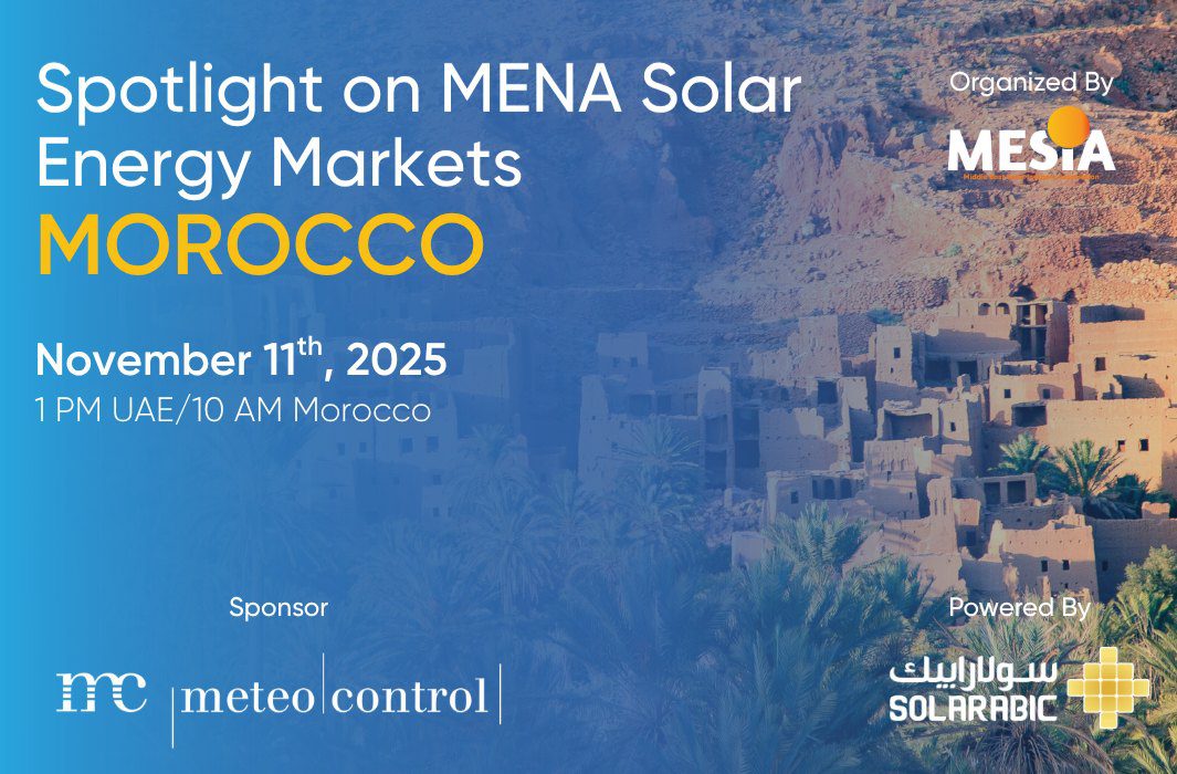Organized by MESIA and powered by Solarabic, this exclusive webinar will explore one of the region’s most dynamic renewable energy landscapes. Morocco’s ambitious solar targets, supportive policy framework, and flagship projects position it as a leader in MENA’s clean energy transition. This session will provide a comprehensive look at the key trends, market drivers, and strategic opportunities shaping Morocco’s solar future, featuring insights from industry experts and real-world case studies.