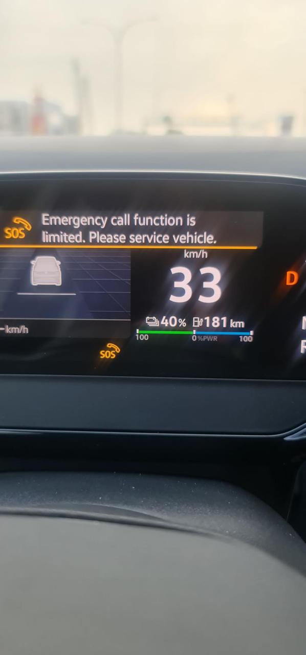 تظهر في الصورة من اليمين تعطل نظام القيادة المساندة، ثم صورة تعطل نظام اتصال الطوارئ، الصورة في الأسفل من اليمين صورة عدم تعرف السيارة على المفاتيح، ثم صورة تعطل أو خلل في بطارية الـ12 فولط.