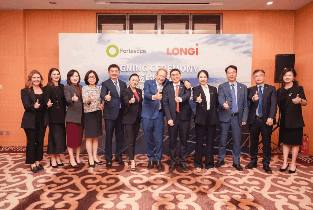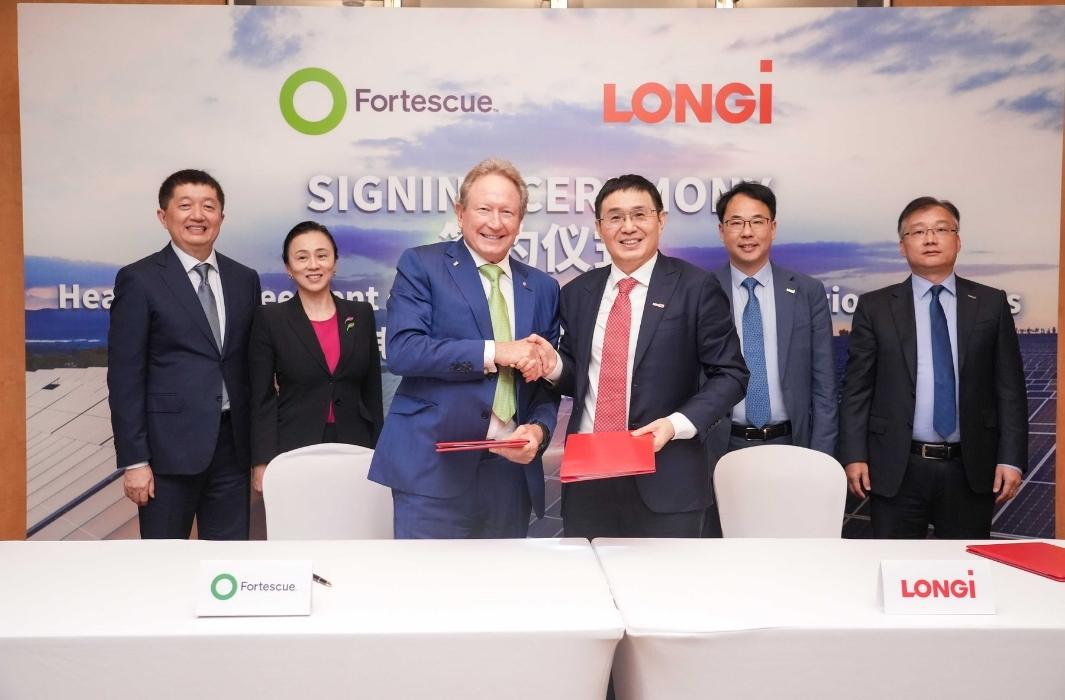 أعلنت شركة لونجي (LONGi) لتقنيات الطاقة الخضراء، الشركة العالمية الرائدة في مجال تكنولوجيا الطاقة الشمسية، عن توقيع اتفاقية مبادئ مع شركة فورتسكيو المحدودة (Fortescue Ltd)، إحدى الشركات العالمية الرائدة في مجال الموارد والطاقة الخضراء. وقد حضر مراسم التوقيع السيد تشونغ باوشين، رئيس مجلس إدارة شركة LONGi، والدكتور أندرو فورست، رئيس مجلس الإدارة التنفيذي لشركة Fortescue، في خطوة تمثل علامة فارقة في الالتزام المشترك بين الشركتين لتسريع التحول العالمي نحو الطاقة المتجددة.
