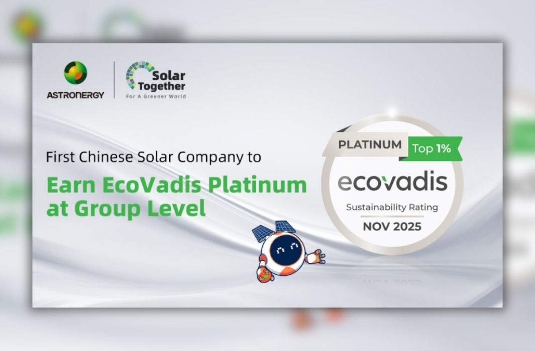 أظهرت أحدث نتائج تقييم الاستدامة الصادرة عن “إيكوفاديس” (EcoVadis) تحقيق شركة أسترونيرجي (Astronergy) درجة استثنائية بلغت 86 نقطة، مما منحها التصنيف “البلاتيني” على مستوى المجموعة. وبهذا الإنجاز، أصبحت أسترونيرجي أول شركة في قطاع صناعة الطاقة الكهروضوئية (PV) في الصين تحصل على هذا الاعتماد الرفيع. ويُعد هذا التصنيف أعلى وسام للاستدامة تمنحه “إيكوفاديس”، مما يضع الشركة ضمن نخبة الـ 1% الأفضل من بين جميع الشركات المُصنفة على مستوى العالم.
